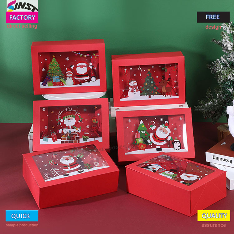 Эта рождественская коробка конфет имеет теплый красный фон, прямоугольный корпус и прозрачное окно, похожее на окно, в которое можно заглянуть в зимнюю сказку. Эта рождественская коробка для конфет изготовлена из твердого бумажного материала, внутри которого могут быть видны конфеты, и она имеет определенную степень стабильности. Его можно адаптировать для продуктов повседневного использования, таких как шоколад, десерты, печенье, жевательные конфеты и т. д.; Это не только милый контейнер для конфет, но и настольное новогоднее украшение. Предоставление его людям для личного пользования может скрасить праздничное настроение, придав каждой сладости ощущение церемонии.