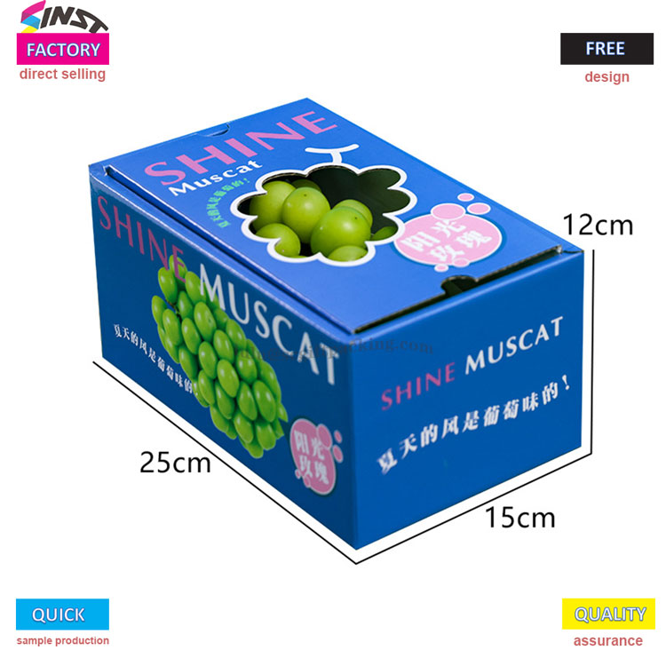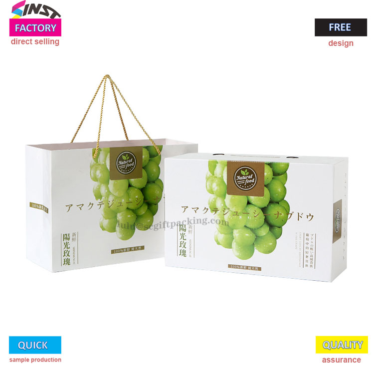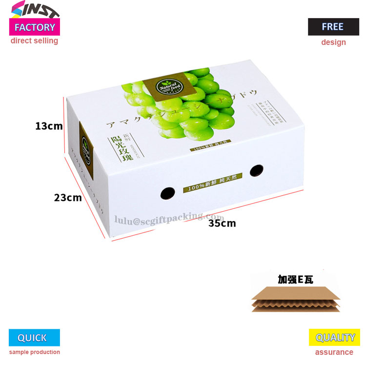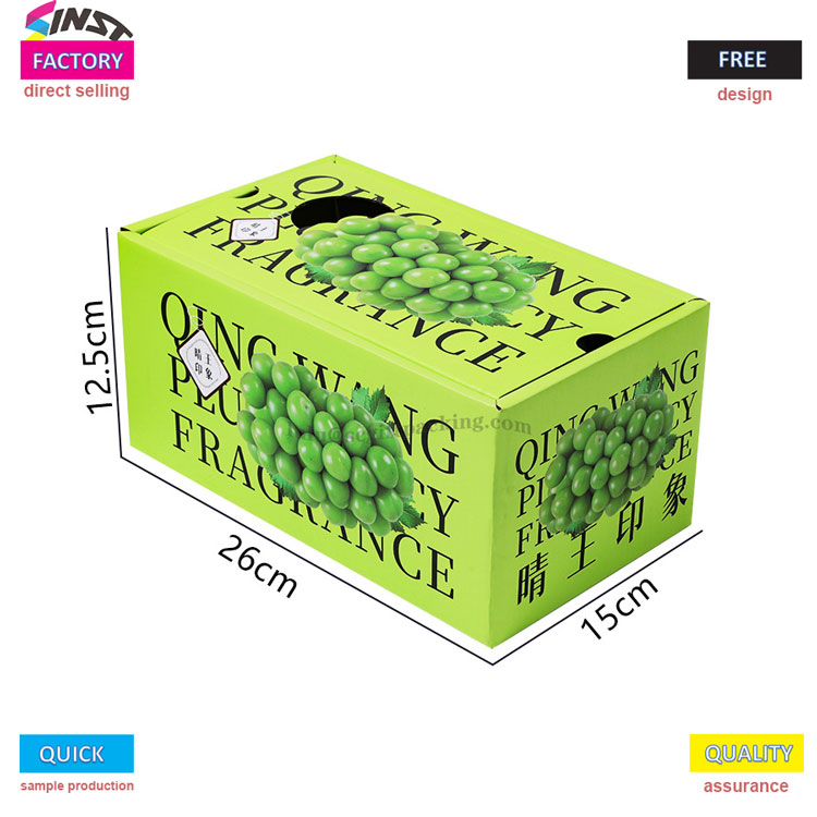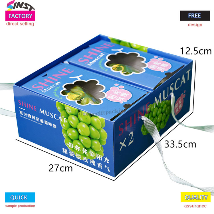 Фруктовая универсальная портативная подарочная коробка для винограда изготовлена из армированного электронного картонного материала с ярким виноградным рисунком, напечатанным на поверхности. Он в сочетании с зеленым ремешком на вершине и логотипом бренда, напечатанным на корпусе коробки, четко передавая нашу основную философию обслуживания - не необходимо в посредниках делать различия в ценах, и весь процесс от отбора к массовому производству управляется фабрикой.