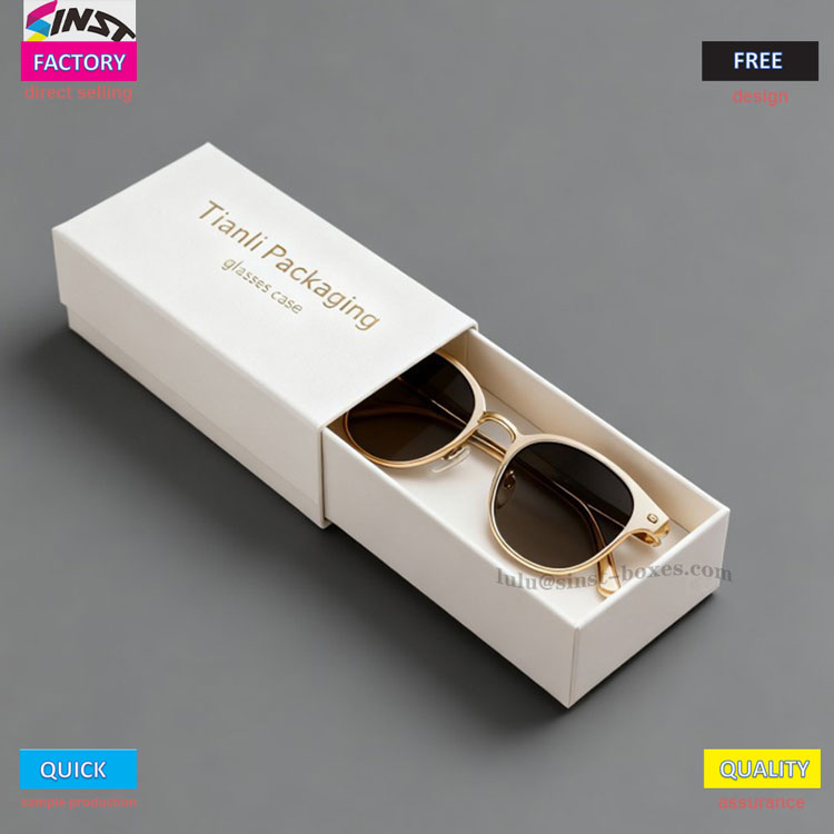 В качестве фирменного футляра для очков текст горячего тиснения на крышке и корпусе футляра выглядит текстурированным, что с первого взгляда отличает его от других обычных футляров для хранения очков. Универсальность подарочной коробки для очков более заметна: это обычная коробка для хранения очков для ежедневного использования с аккуратно расположенными ящиками; При вручении подарков клиентам или друзьям золотисто-белая упаковка делового стиля мгновенно превращается в стильный подарочный футляр для очков; Если вы хотите быть более эксклюзивным, вы также можете найти фабрику, которая сможет настроить и добавить логотип бренда или благословляющее послание на корпус коробки, превратив ее в уникальный индивидуальный футляр для очков - он не только содержит очки, но и обращает внимание на получателя.