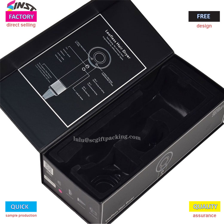 Когда мы открываем переворачивающую крышку подарочной коробки для волос, внутренняя индивидуальная черная пена канавки близко соответствует форме фен и аксессуаров (сопло, шнур питания и т. Д.), Таким образом, «индивидуальный» защитный слой, который эффективно сопротивляется транспортной вибрации и царапинам; Откройте подарочную коробку с фен, чтобы быстро получить основные функции, такие как многомодовая работа и регулировка скорости ветра, что позволяет начинающим начать за секунды.