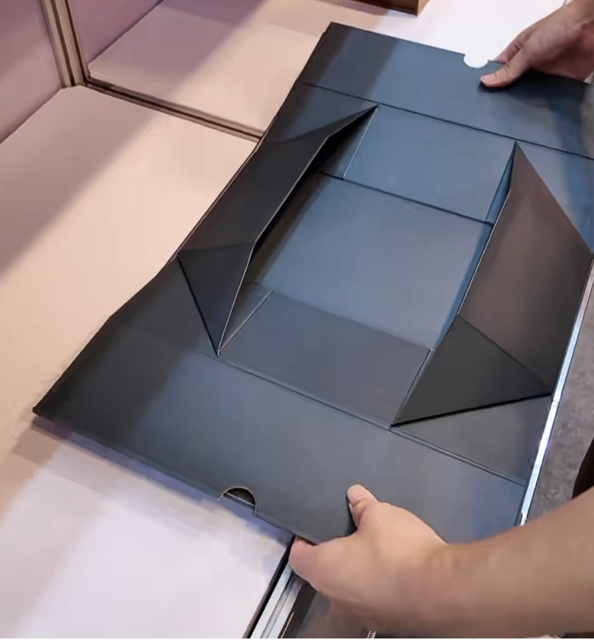 Эта складная бумажная коробкав основном в темно -сером цвете, с плоской поверхностью, но скрытой изобретательностью - корпус коробки имеет четкие разделительные области (как показано на рисунке 1), что направляет пользователей легко разворачиваться или складываться через складки. При работе удерживайте обеими концами обеими руками и аккуратно подтолкните их, чтобы преобразовать бумажную коробку из плоского состояния в трехмерный ящик для хранения, экономя 70% транспортного пространства.