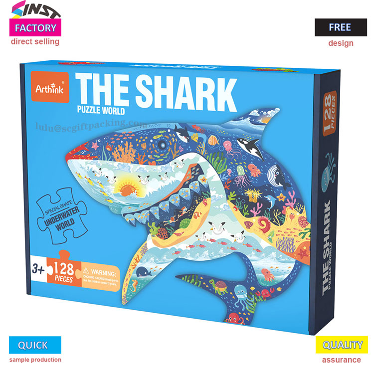 На прошлой неделе я встретил Чжан Цзе в выставочном зале. Она держала акулуподарочная коробка-пазлона только что получила подарок и радостно воскликнула: «Мой ребенок открыл ее и закричал: «Мама, смотри! Зубы большой акулы засияют!»» Глядя в том направлении, куда она указывала, акула на синей подарочной коробке была покрыта маленькими рыбьими кораллами по всему телу, а после сборки 128 частей головоломки она выглядела как плавающий «подводный король» - это наш недавно выпущенный THE SHARK PUZZLE WORLD, который также является красочной подарочной коробкой с инопланетянами на картинке.