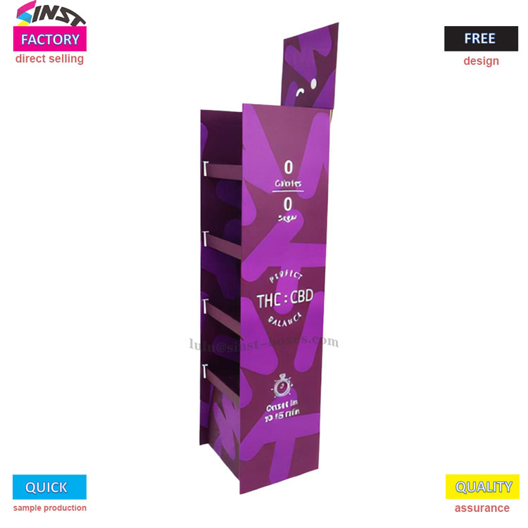 Что в этом хорошего? Во-первых, цвет ярко-фиолетовый с игривыми узорами, которые можно разместить рядом с кассой или полкой и сразу привлечь внимание людей; Кроме того, он разделен на несколько слоев, которые могут отображать множество мелких предметов и не занимать места, позволяя большему количеству людей увидеть эти мелкие предметы в магазине; Более того, эта полка изготовлена из картона, что экономит средства и позволяет небольшим магазинам совершать покупки, не беспокоясь о деньгах; Наконец, это делает старая фабрика, которая уже 15 лет производит выставочные стенды. Вы можете настроить любой стиль по вашему желанию и быстро подготовить его для срочных заказов или изготовления образцов. Для его сборки не потребуются инструменты, что особенно удобно.