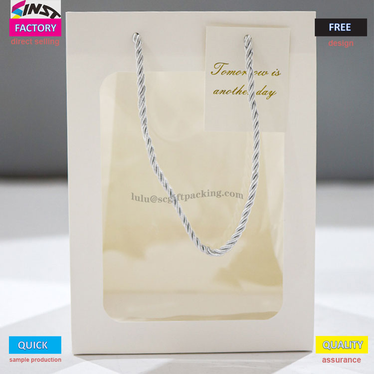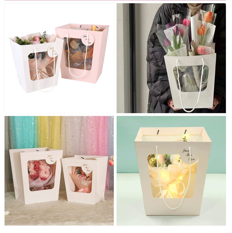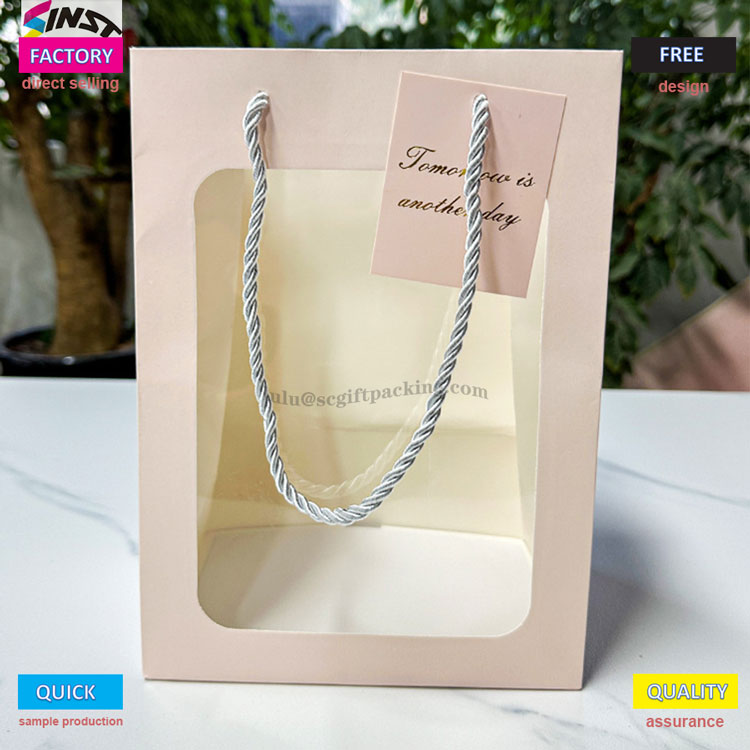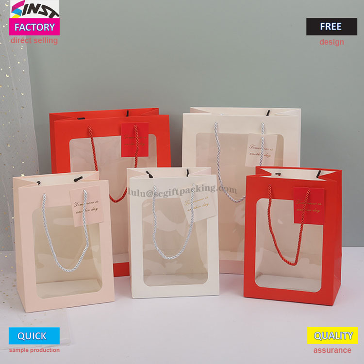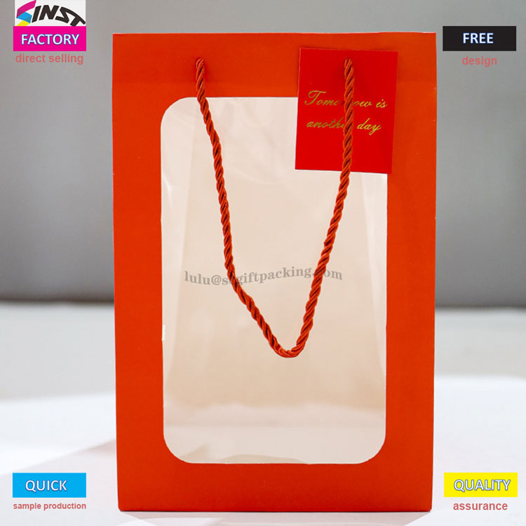 Вы боитесь открыть слепые коробки при подаче подарков? Эта сумочка поставляется с прозрачным дизайном окна, который позволяет четко представленной контур подарок и обеспечивает удобную сцепление, что делает его визуальной близостью; Прозрачный дизайн окна ПВХ может продемонстрировать восхитительные творения и подарки, такие как торты, печенье, макароны и т. Д. Рукописные благословения мгновенно заполняют атмосферу эксклюзивной церемонией. Подарки на дни рождения, праздники и годовщины могут быть даны как с внешностью, так и с намерением. Конечно, сумка для цветов также является хорошим выбором для ежедневного хранения.